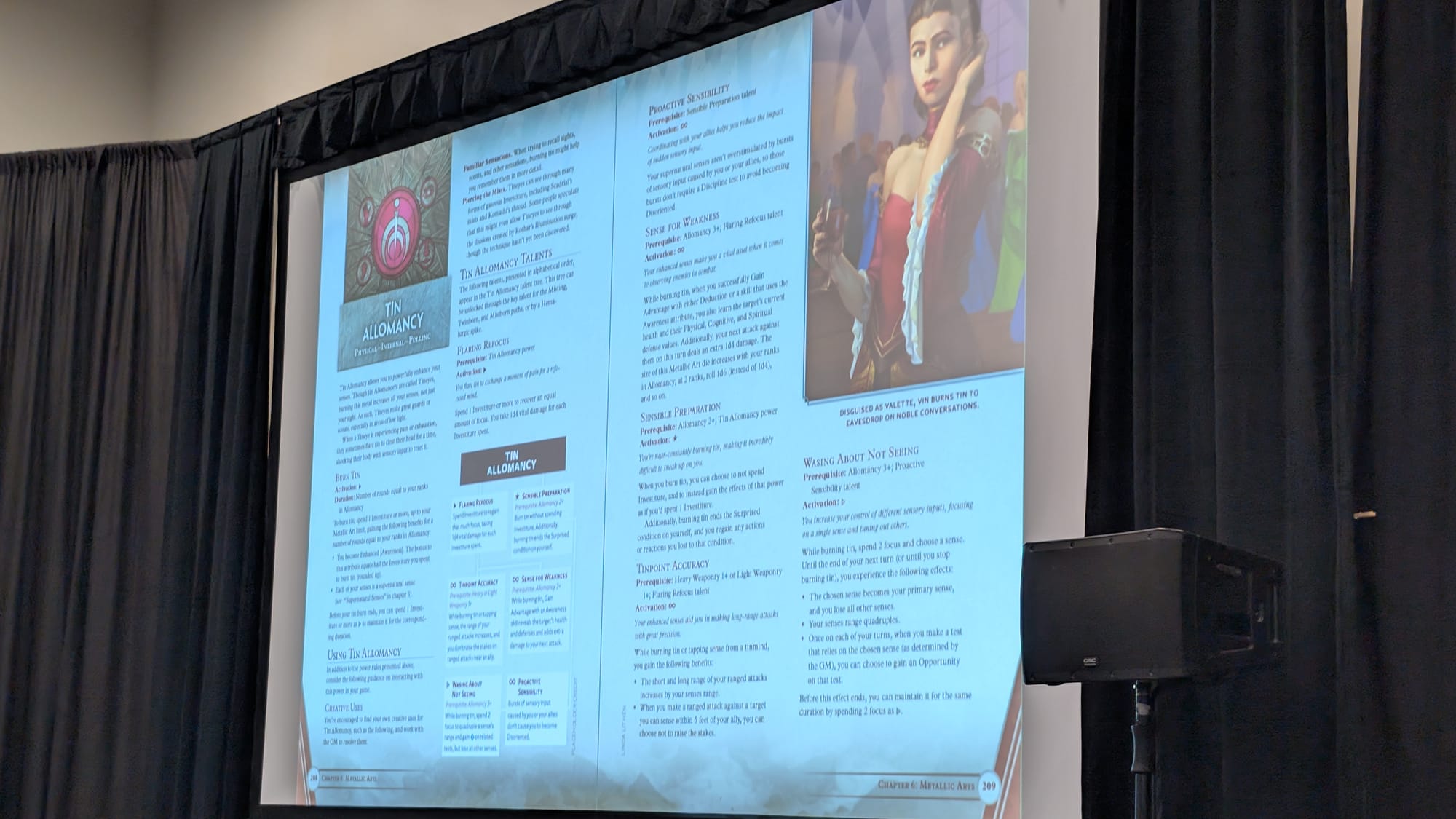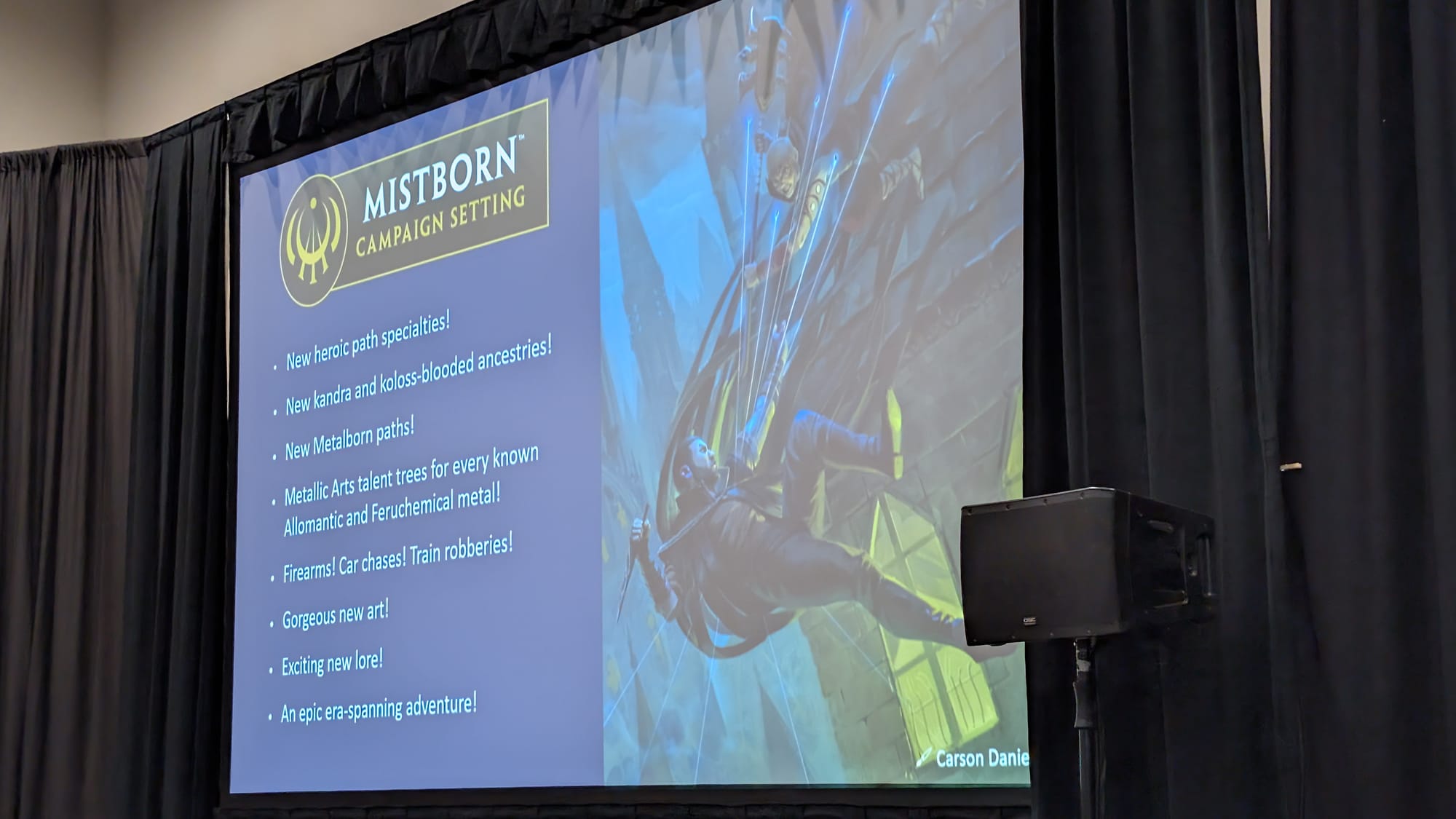 We got lots of new information on the Mistborn setting of the Cosmere RPG. Checkout the slides below - we got a ton of new art and a good look at some of adjusted Heroic Paths and Metallic Arts.