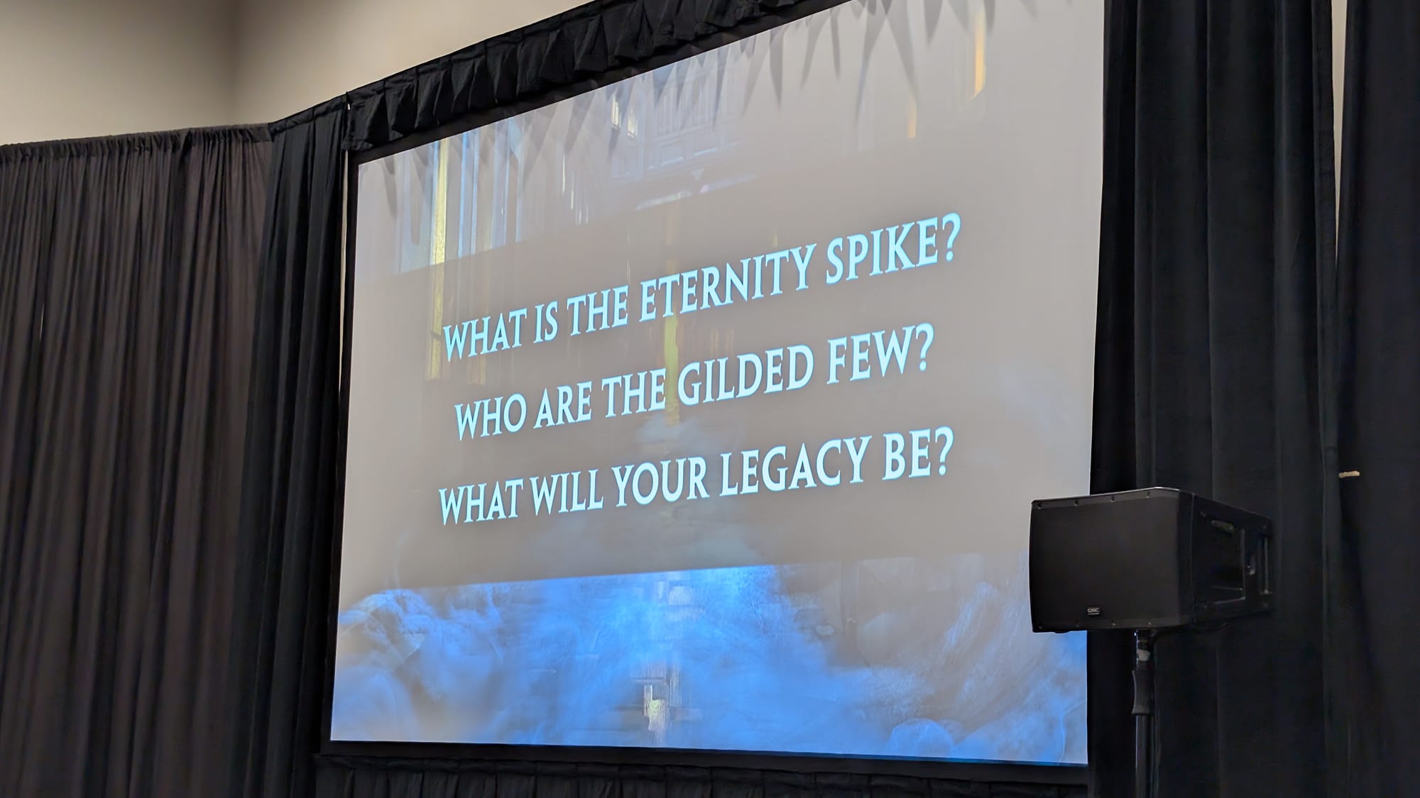 We got updates on some of the adventure we'll be playing through: we'll be learning about something called the "Eternity Spike" and meeting a group called the "Gilded Few". The main antagonists feature some familiar names, like Tekiel and Elariel, along with some faces like Bayron Conrad.