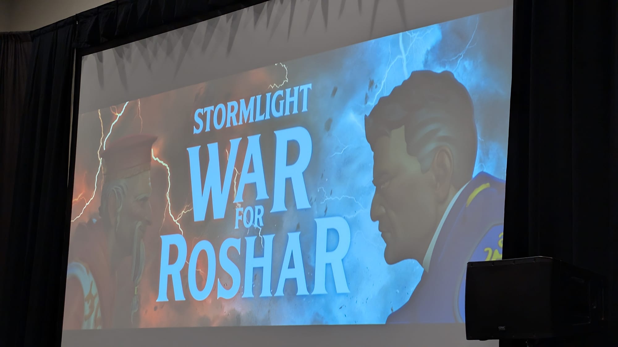 We didn't get many updates on the Stormlight RPG, but there was a mention of a new war-focused Stormlight adventure coming.